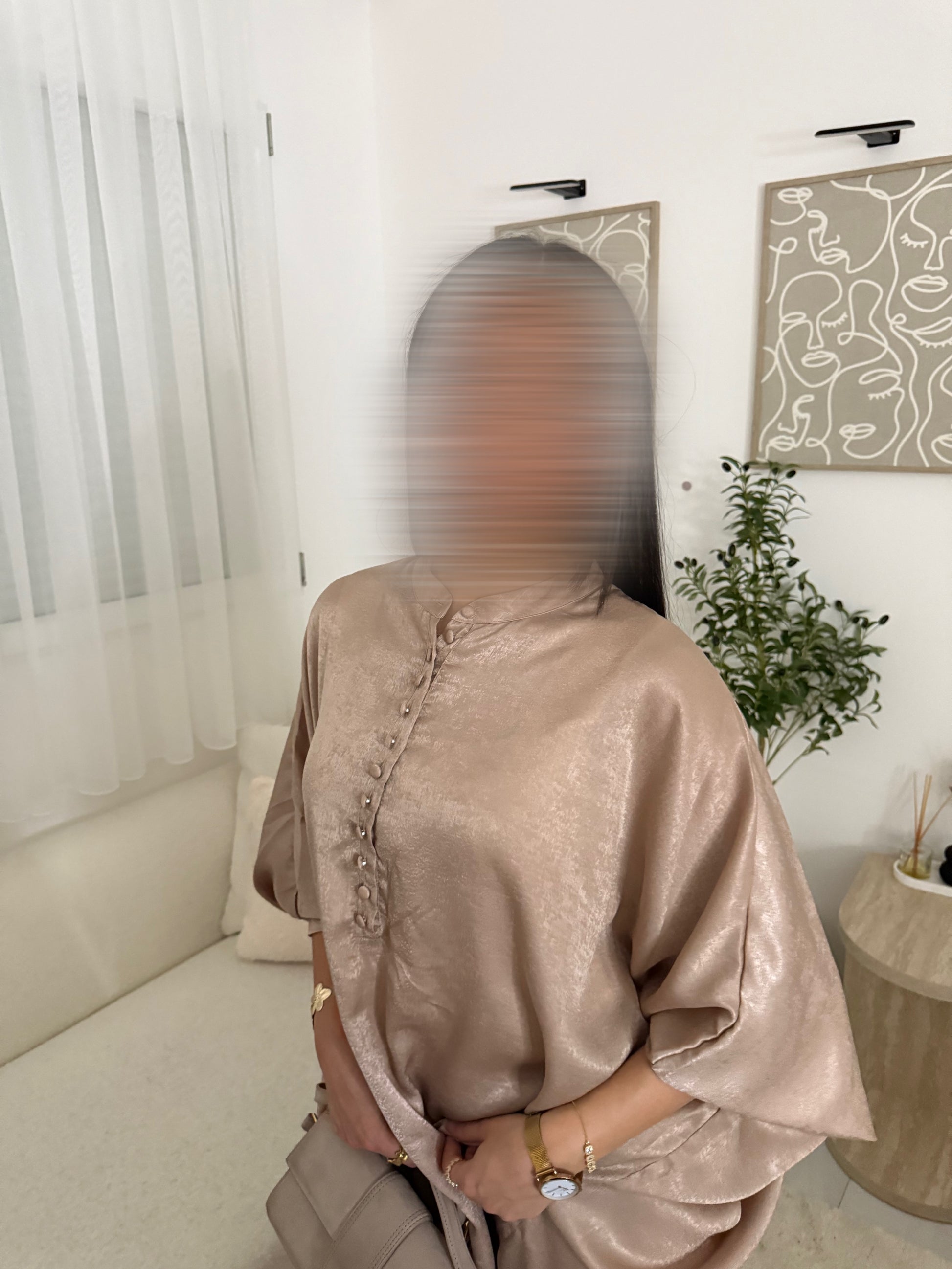 Magnifique abaya dubaï avec une matière très très fine et légère. Taille grande et est longue.