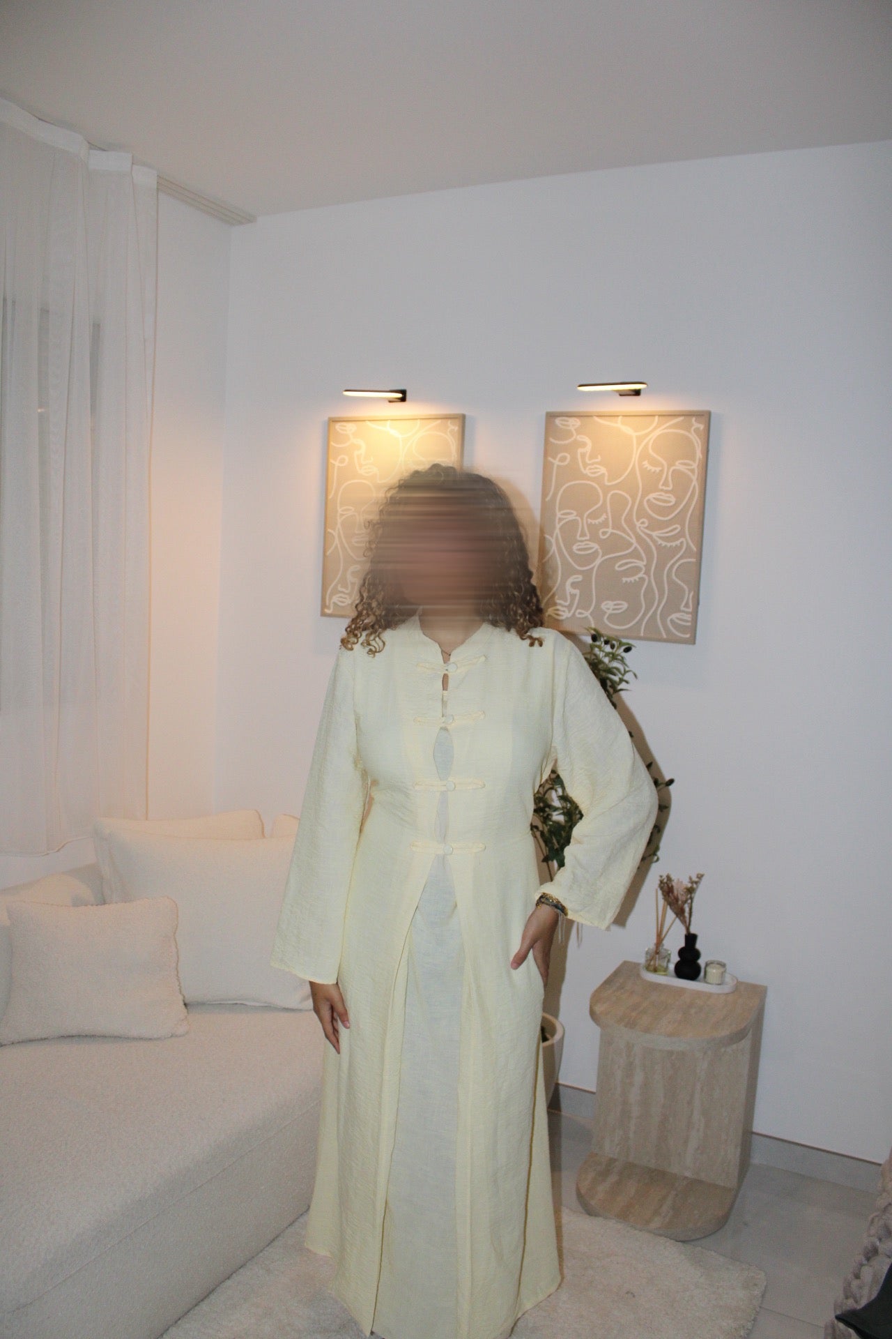 Ensemble Abaya et sur robe couleur jaune pastel